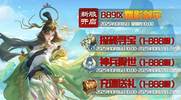 新服开启:10月16日,周四上午10点开新区889:霜影剑牢