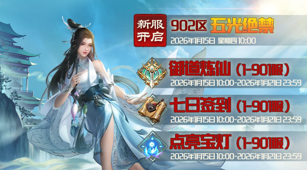 新服开启:1月15日,周四上午10点开新区902:五光绝禁