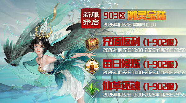 新服开启:1月22日,周四上午10点开新区903:溯灵宝珠