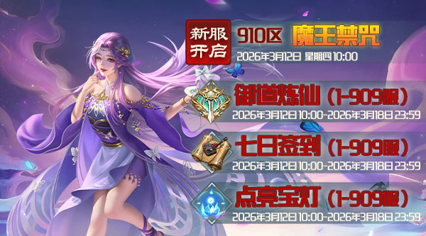 新服开启:3月12日,周四上午10点开新区910:魔王禁咒