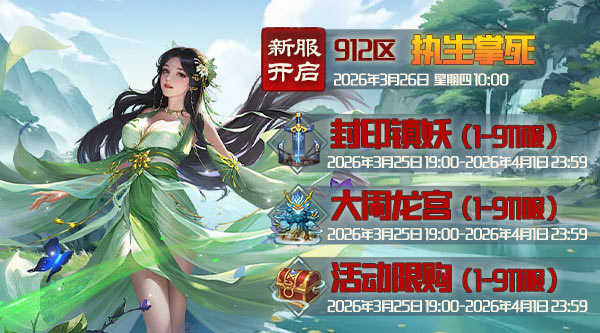 新服开启:3月26日,周四上午10点开新区912:执生掌死